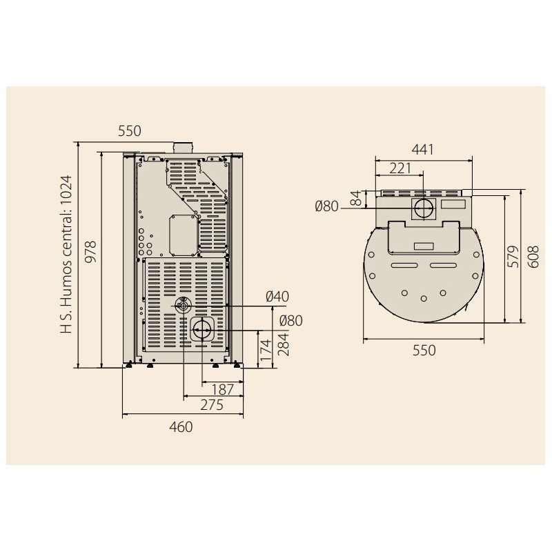 Der Ofen Runde Pellets Ferlux Helen erreicht den thermischen Komfort, der im Hauptraum genutzt werden kann, durch natürliche Konvektion der erwärmten Luft durch die Verbrennung der Pellets.