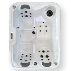 Das Spa Quadrat aus Acryl bringt Ihnen Komfort im Wasser bei 38 ° C.Drei Sitze und zwei Liegeplätze, um einen Moment der Entspannung zu genießen. Dank seiner quadratischen Form passt der Whirlpool problemlos in jeden Raum und ist einfach zu installieren.