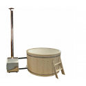 Seine Abmessungen von 1,00 m Höhe und 1,80 m Innendurchmesser (2,00 m Gesamtdurchmesser) ermöglichen es 4 bis 6 Personen, bequem zu sitzen und Wasser zu genießen, das auf bis zu 38 °C erhitzt werden kann.