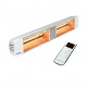 Heliosa HD 88 Heizstrahler mit 3000W Leistung aus weißem Aluminiumguss. Das an der Wand montierte, verstellbare Modell mit Funkfernbedienung mit Speicher für den Innen- und Außenbereich ermöglicht die Beheizung einer Fläche von bis zu 25 m².