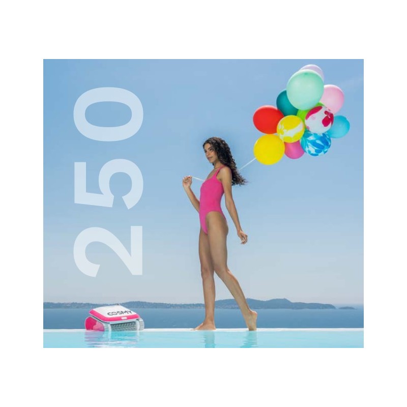 Der COSMY 250 BWT Elektroroboter für eine gründliche Reinigung Ihres Pools. Ideal für die vollständige Reinigung des Bodens, der Wände und der Wasserlinie Ihres Pools bis zu 12 m.