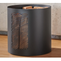 Seine zylindrische Form hält Staub und Holzspäne zurück, für ein Eckfeuer immer sauber.