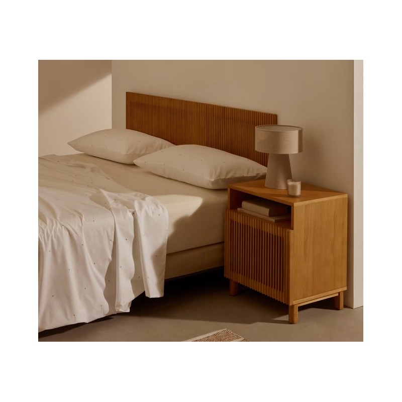 The Bay Nightstand For style, ideal for bedroom spaces with the natural essence of ash with vertical slatted openwork doors to play with light and textures.