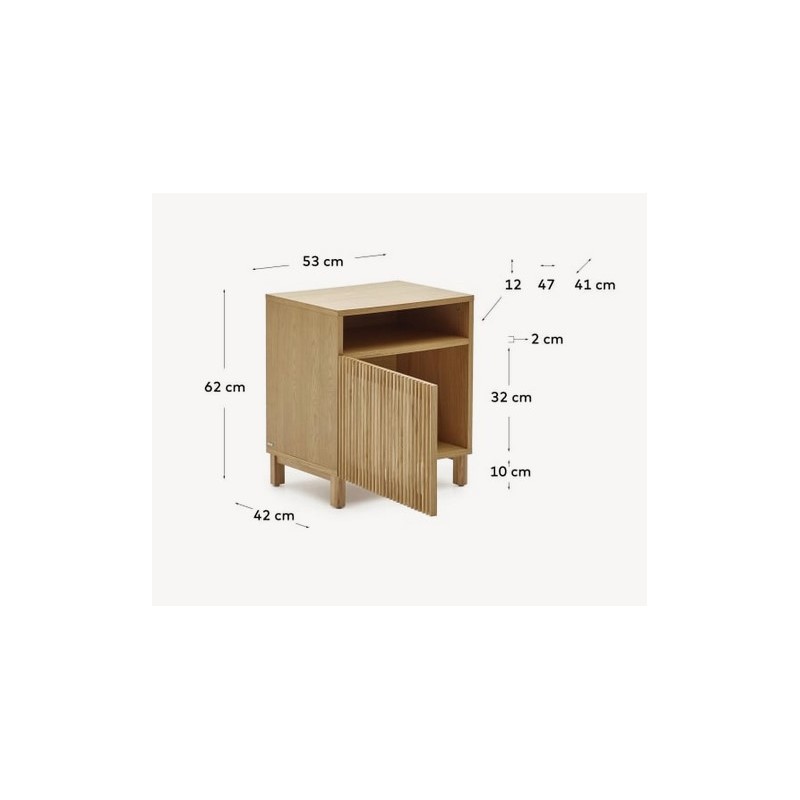 - Bedside table with ash wood door and oak veneer structure.