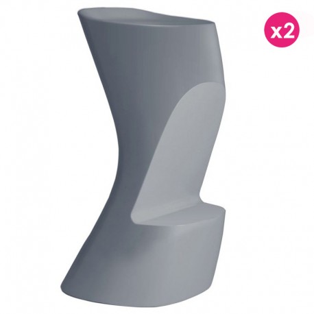 Set of 2 Bar Stools Vondom Moma High seat height 74 steel grey.