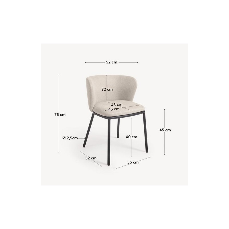 The Elia chairs with beige chenille fabric seat and steel legs black. With its comfortable and contemporary design, the Elia chair is suitable for the dining table.