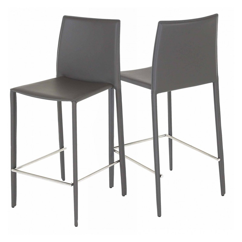 Additional information: conditioned by 2, assemble A, seat and back in recycled leather, feet in metal covered in recycled leather, crossbars in polished stainless steel, back height: 35 cm, width high back: 37 cm, seat height: 66 cm, in front of seat width: 44 cm, width back seat: 35 cm, seat depth: 42 cm, height crossbars on feet: 23 cm