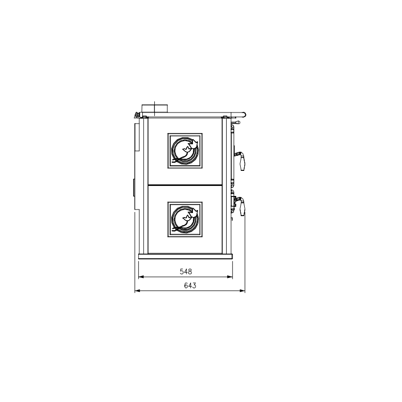 The cast iron wood-burning cooker uses wood logs up to 40 cm.