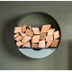 The Corinth wall-mounted log rack is inspired by the rose windows, domes and interior arches of Greek houses.