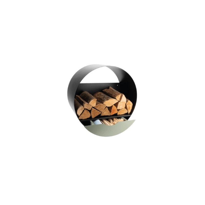 Corinth Black and Sage Green Wall Log Rack Dixneuf Design with drawer: