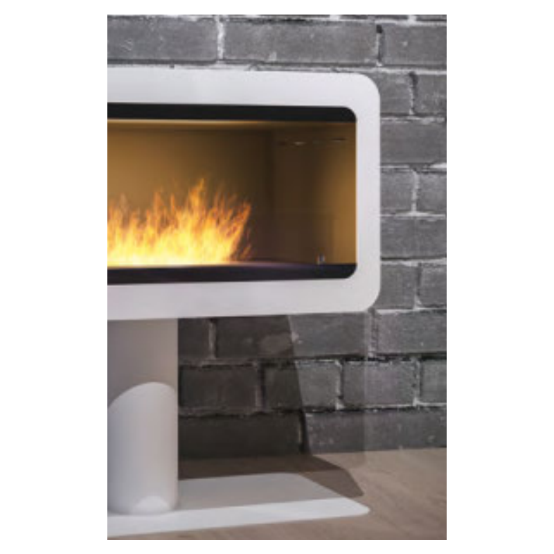 Infire Inecco bioethanol fireplace with 2 kW white support and glass.