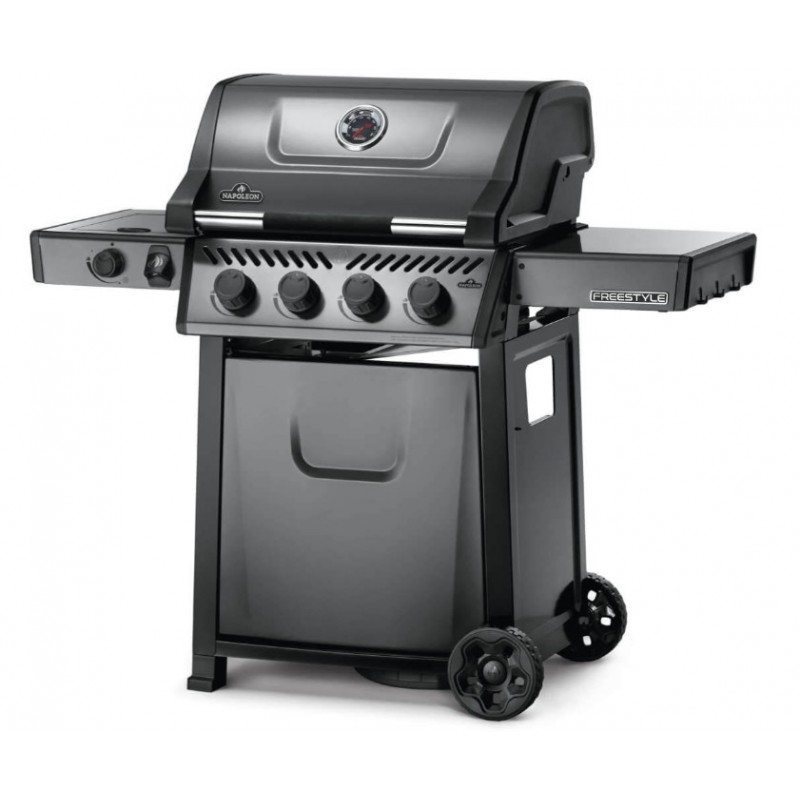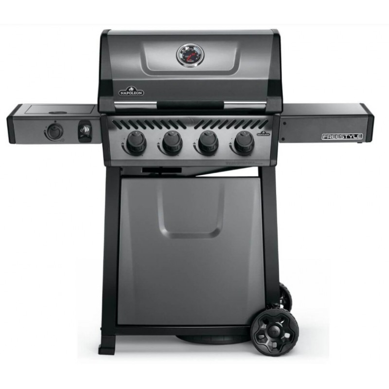 The Napoleon Freestyle 425 Propane Gas BBQ with Side Stove is a compact grill with enameled cast iron grates, a Jetfire ignition and a folding side shelf, it allows for even, easy and fast cooking.