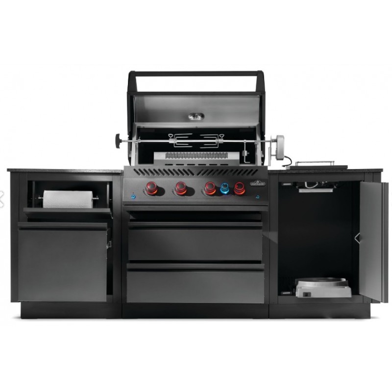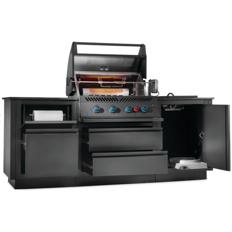OASIS® 105 Napoleon Matte Black 700 Series Outdoor Kitchen with Sizzle Zone® Side Burner.