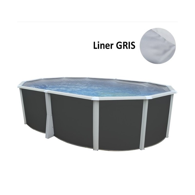 Above ground pool TOI oval Compact Anthracite 550x366x132 with its complete kit ready to swim.