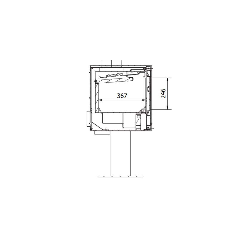 - Smoke connection: 150mm on top