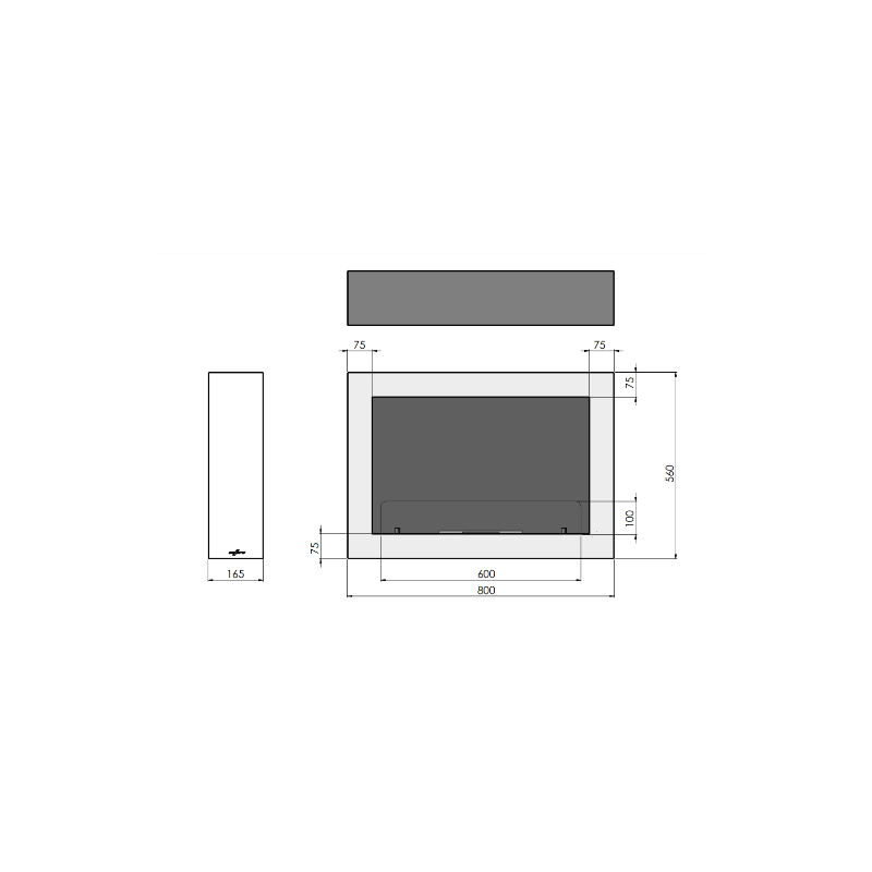 La chimenea de bioetanol Murall 800, sin conducto con 1 hoja de vidrio, se puede instalar suspendida de la pared.