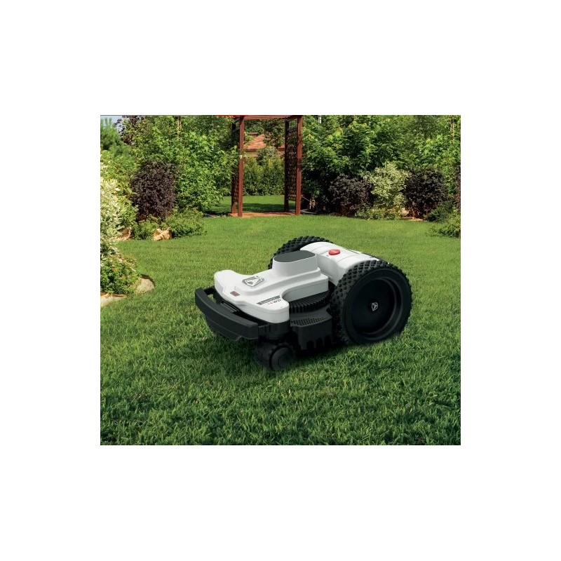 Entre las peculiaridades de Ambrogio 4.0 Basic, la más apreciable es sin duda su capacidad para trabajar en superficies muy irregulares sin perder la eficiencia del corte, gracias a la presencia del eje articulado en la zona trasera.
