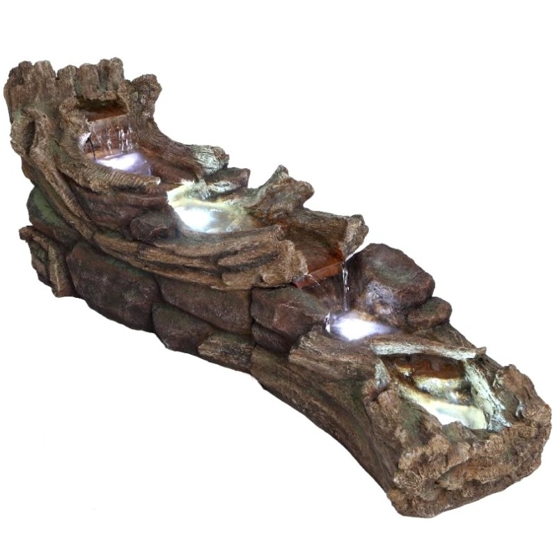 La fuente Arbia Ubbink, un arroyo prefabricado que imita la forma natural de un árbol viejo. El agua fluye hacia el depósito integrado en varias pequeñas terrazas iluminadas por LED. Completo con bomba para el jardín listo para usar