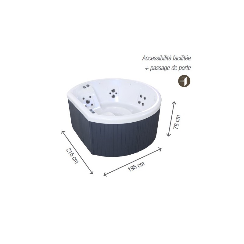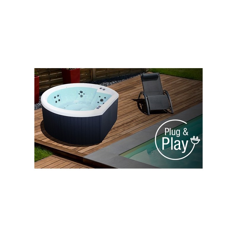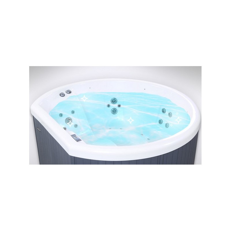 El Spa Halfmoon en acrílico le brinda comodidad en el agua a 38 ° C.Tres asientos y un lugar para descansar para disfrutar de un momento de relajación. Gracias a su forma redonda, el spa se adapta fácilmente a cualquier espacio y es fácil de instalar.