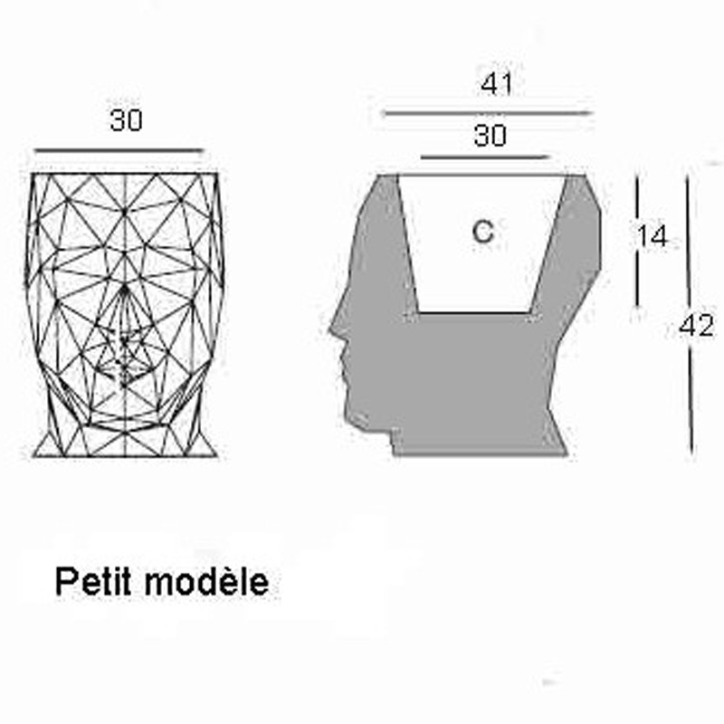 - en 4 tamaños: 70 x 90 x H 100 cm, 49 x 70 x H 70 cm, 30 x 41 x H 42 cm, 13 x17 x H 18 cm.