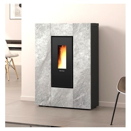 Estufa de pellets La Nordica Extraflame Marilena Plus AD 8kW Piedra natural estrecha y ventilada.