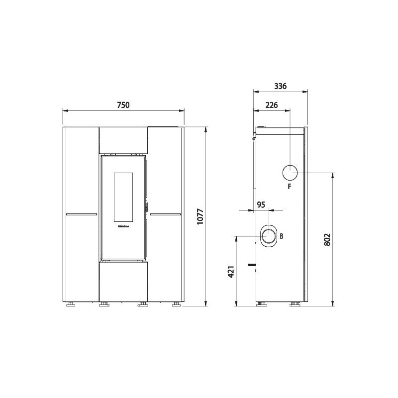 Instalación y garantía : La instalación debe cumplir con las recomendaciones del fabricante La Nordica Extraflame y cumplir con las normas vigentes en el país, (de conformidad con el D.T.U 24-2-2 para Francia).
