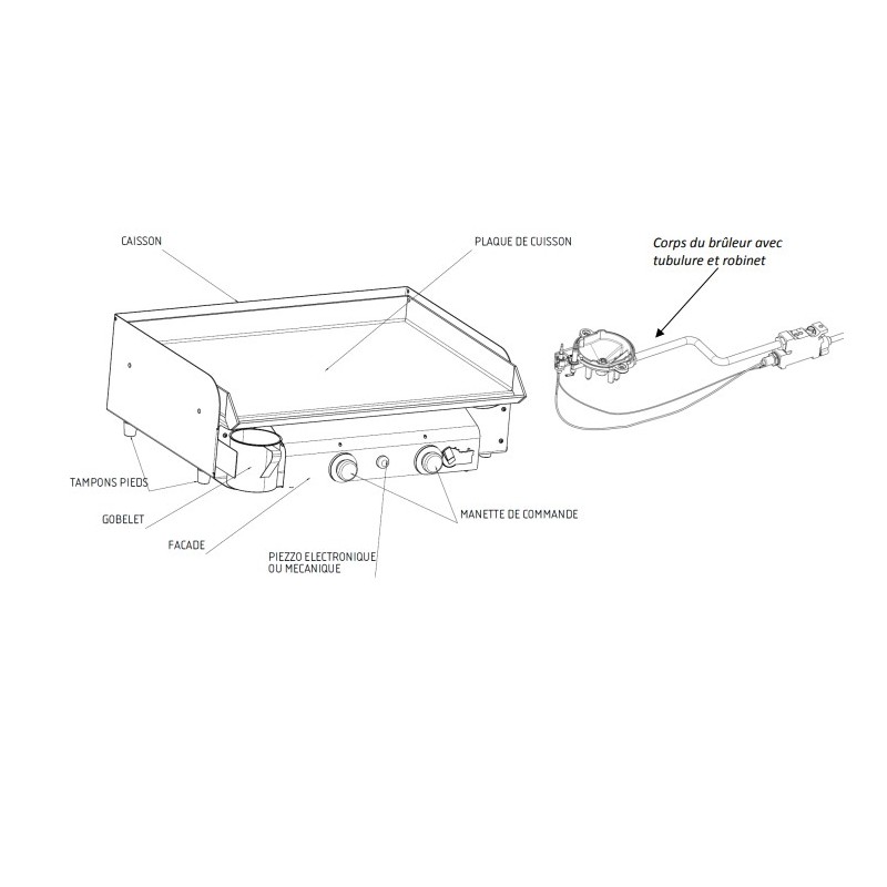 Plancha gas 2 fuegos placa y caja de acero inoxidable: