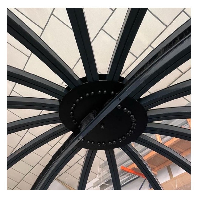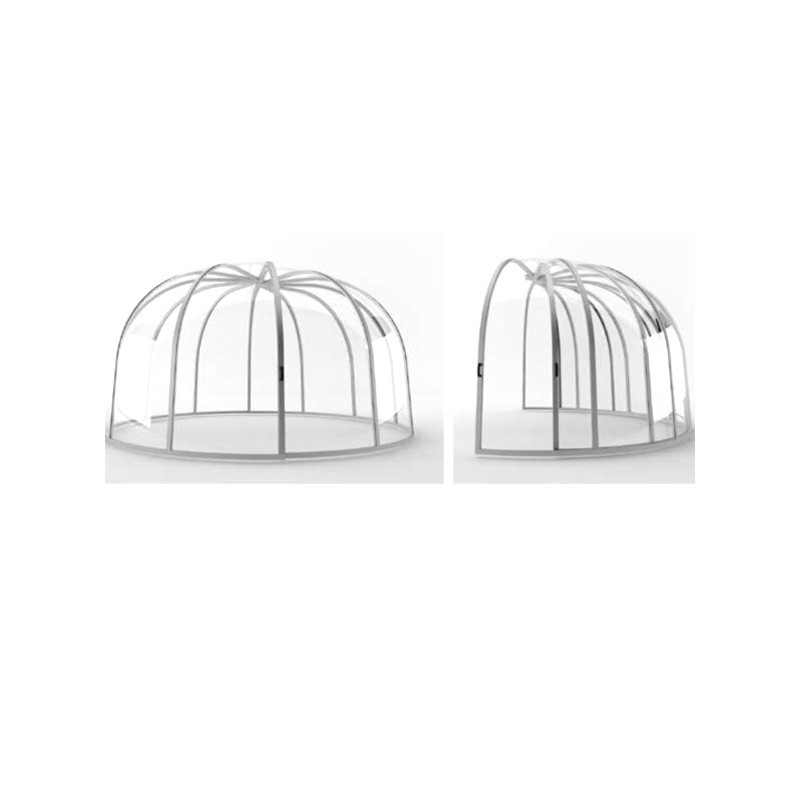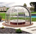 Este espacio móvil con un diámetro de 3,90 m y una altura de 2,50 m formado por láminas de policarbonato transparente de 3 mm para una vista panorámica desde su Spa.