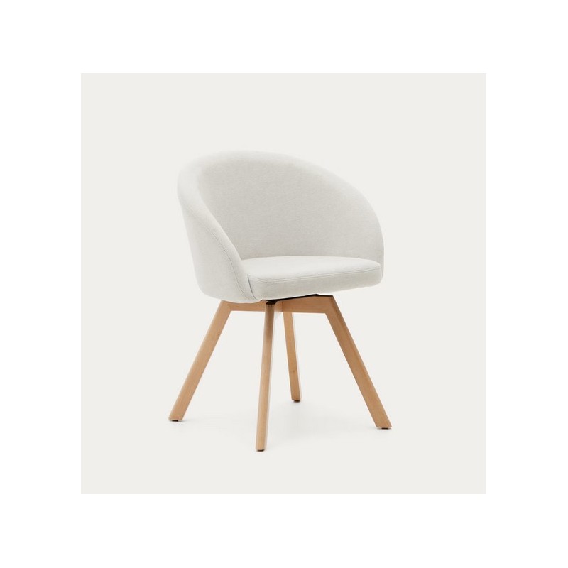 Silla giratoria Arvin tapizada en tejido efecto chenilla beige y Patas de madera de roble con acabado natural 100% FSC.