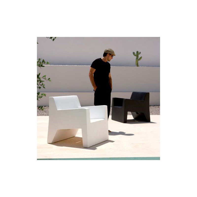 El diseño del estudio marca española Vondom polvo muebles de diseño con la colección Jut. Compuesto por una serie de muebles destinados externos o modernos interiores. Esta colección se caracteriza en su diseño con formas puras y líneas angulosas. La tecnología que utilizan para el diseño de la silla Jut Butaca (polietileno de baja densidad 100% reciclable), es resistente a la intemperie, a temperaturas extremas (-60 ° C a + 80 ° C), UV, así como choque.