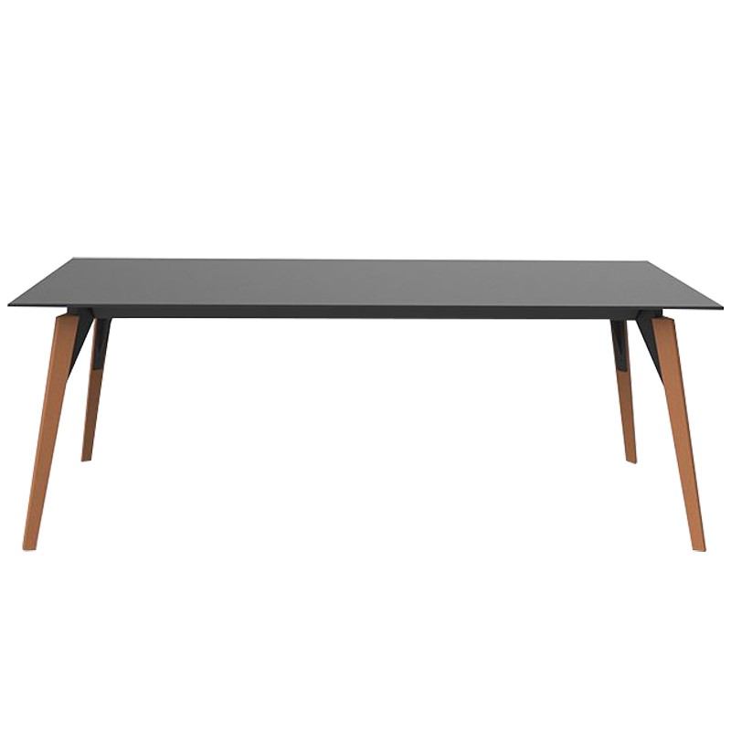 Mesa Vondom Faz Bandeja de madera 200x90 negro y patas de roble natural.