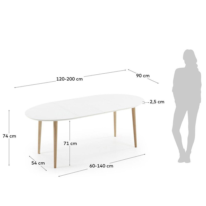 Mesa Oval Extensible 120 a 200x90 Patas Blancas y de Haya KosyForm