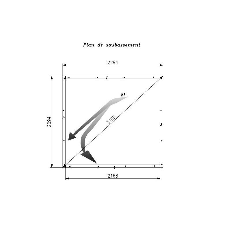• A installer obligatoirement sur une dalle béton, kit de soubassement et vis à bois fournis