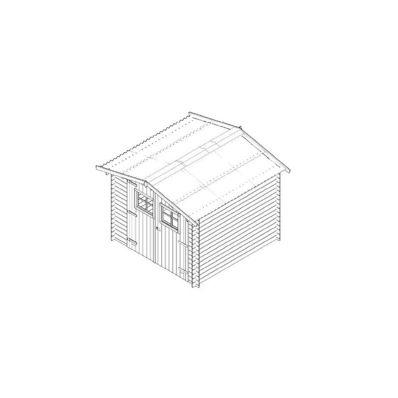 Composées de panneaux de 28 mm d’épaisseur, les cloisons de cette cabane de jardin sont surmontées d’un toit à deux pans dont la couverture est faite de plaques ondulées bitumées. Les parois en Madriers avec rainure languette en sapin épaisseur 28 mm. La Coupe chalet pour un assemblage des parois en angle solide et étanche. Coupe biseautée en bout de lames. Une double porte de 160 x 169 cm, avec lucarnes, vous permettra d’accéder facilement à l’intérieur de l’abri, même avec du matériel relativement encombrant.