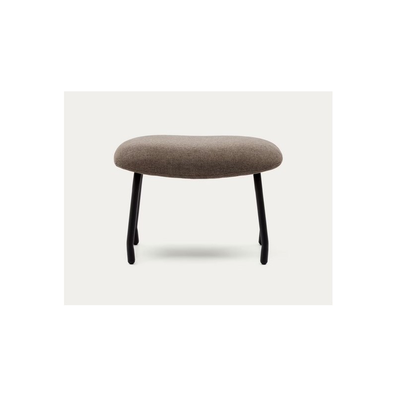 Le repose-pied pour le fauteuil Lina en tissu chenille marron clair et pied en acier noir.