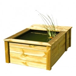 Matériaux : revêtement bois et bassin intérieur en plastique