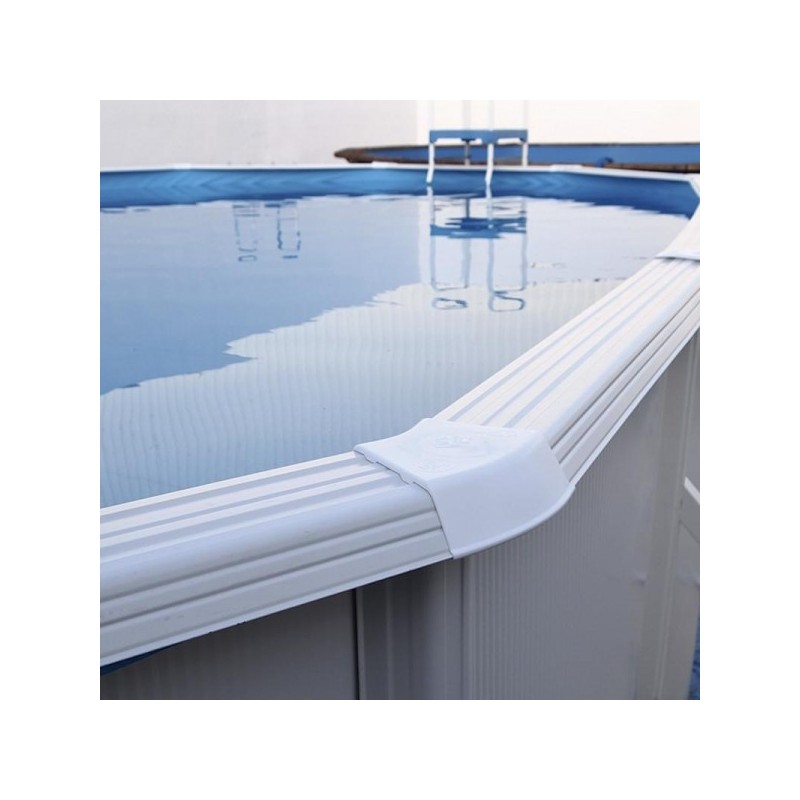 Piscine ovale de 132 cm de haut sans contreforts. La piscine s'intègre parfaitement dans votre jardin. Structure en acier avec profilés métalliques et skimmer complet.