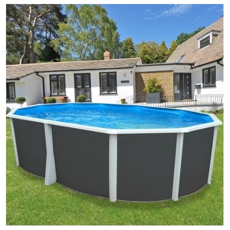 Piscine hors sol TOI ovale Compact Anthracite 550x366x132 avec son kit complet prêt à nager.