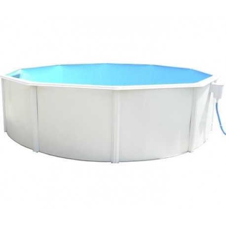 Piscine hors sol TOI ronde Canarias blanc 350xH120 avec son kit complet prêt à nager.