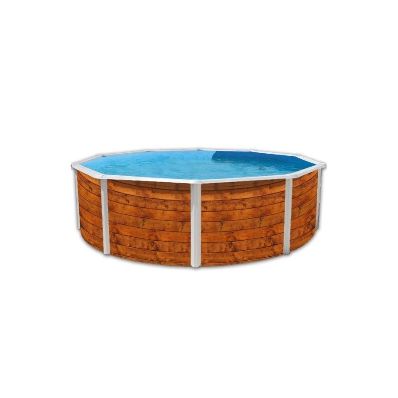 Piscine TOI ronde Etnica de 1,20 m de haut Décor bois avec échelle, Skimmer, Liner, profilés, Filtre à sable.