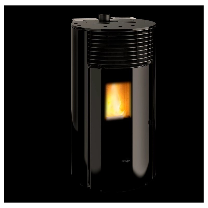 Poêle à Granulés Rond Ferlux Helen Verre noir Magique 10 kW.