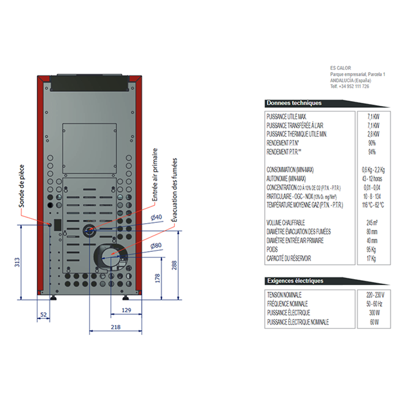 ESCALOR. Puissance 2,8kW à 7,1kW - Rendement max. 94% - Volume de chauffe maxi conseillé 165m3 - Autonomie jusqu'à 28h - Programmateur et télécommande fournie - Capacité 17kg - Affichage numérique - Blanc perle et Noir.