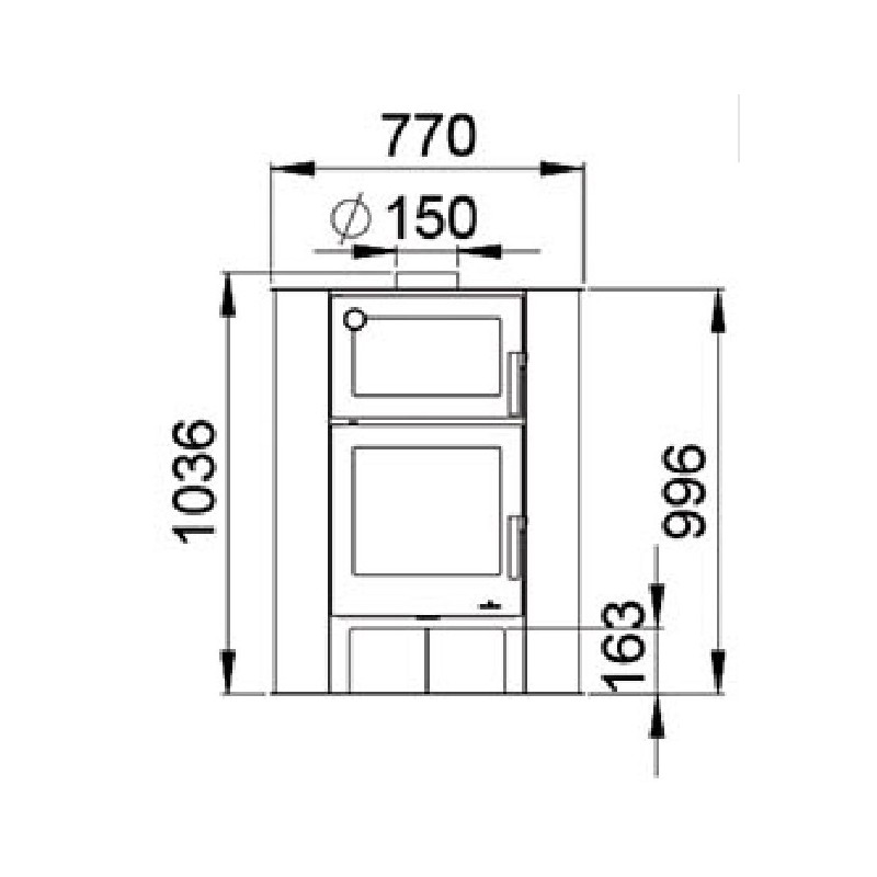 Volume chauffé:225m3- Rendement 80% - Fabriqué en fonte et acier- Intérieur en vermiculite - Double combustion et Système verre Propre - 1 porte Vitrés vitrocéramique résistant à 750 °C. Équipé d'un bûcher et d'un four avec thermomètre.