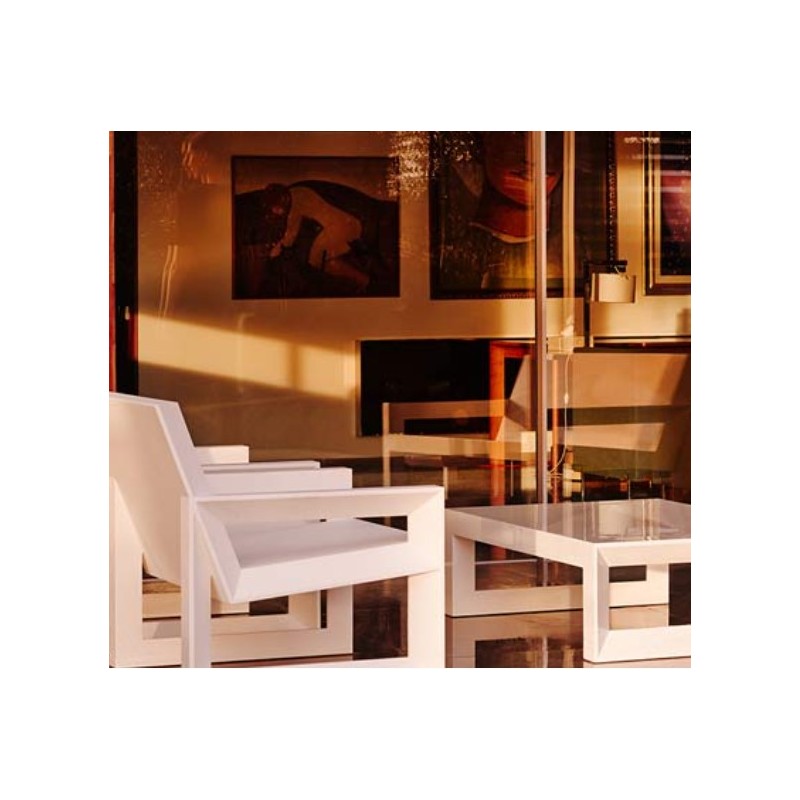 Salon de jardin Frame de Vondom  composé d'un canapé, d'un fauteuil et d'une table basse ultra contemporain avec des lignes géométriques épurée pour l'intérieur et l'extérieur.