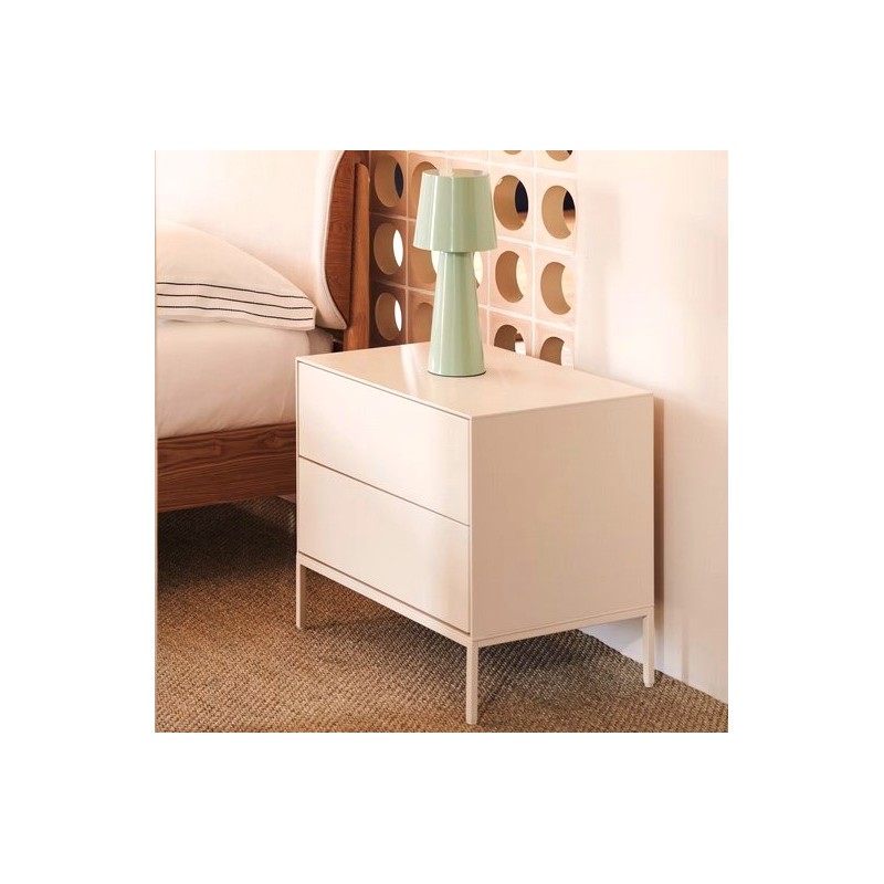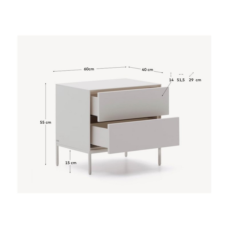 Table de nuit Rana laqué blanc avec finition moderne et 2 tiroirs.