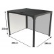 La pergola bioclimatique est équipée de rideau latéral pour le côté de 2,40 m et d'un autre rideau latéral pour le côtés de 3,00 m.