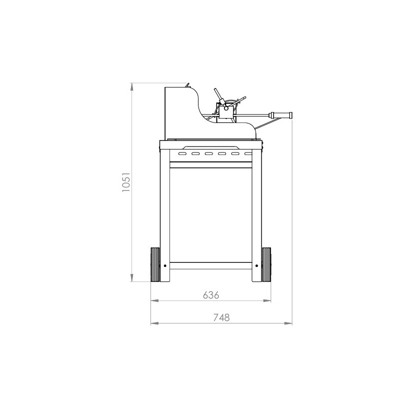 Le Broiler Segno con girarrosto 72x51, griglia L54xP32 cm regolabile su 3 livelli con relativo carrello.