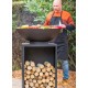 Il Braciere di cottura con riserva di legna e il suo coperchio di protezione e griglia rialzata. Con il suo anello di cottura da 80 cm per 6-8 persone.