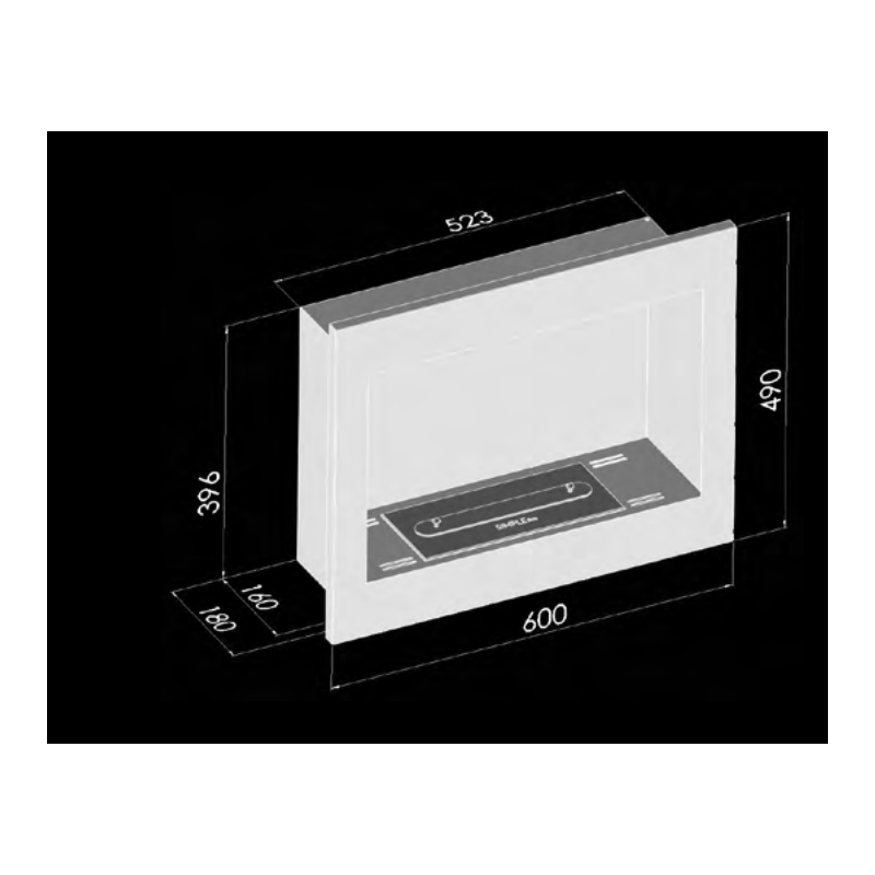 Caminetto a bioetanolo Cornice: Bruciatore in acciaio inox con serbatoio da 0,7 litri.