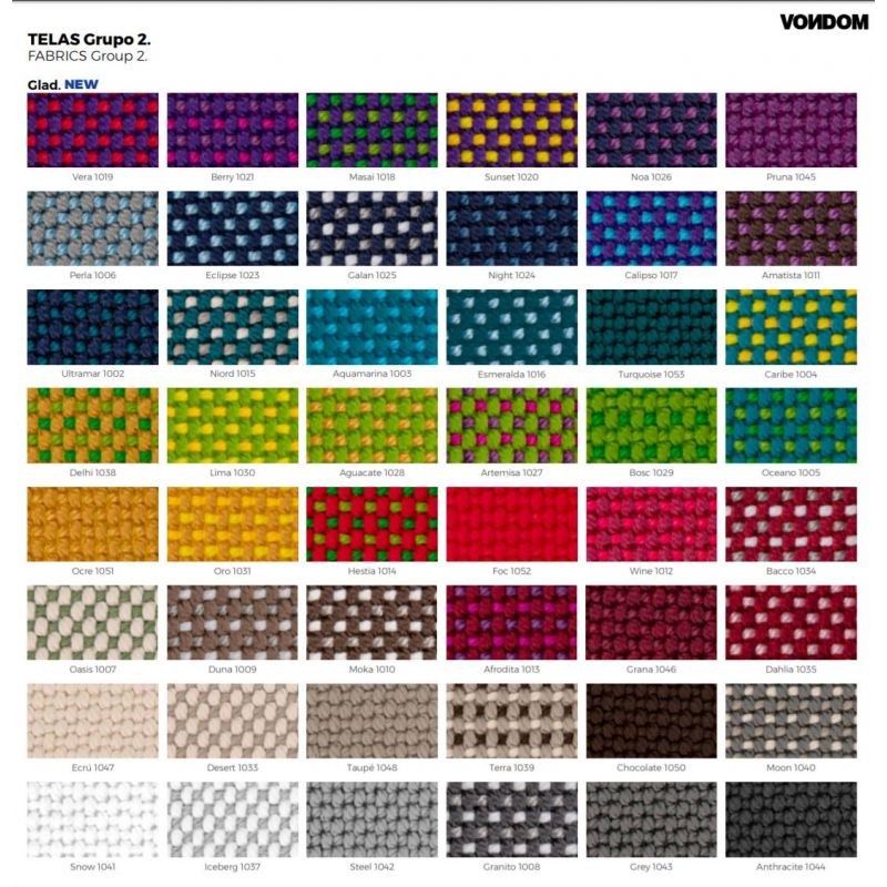 Vale a dire: Altezza seduta: 36cm. Uso interno ed esterno. Nuovo metodo di produzione estremamente resistente, resistente ai raggi UV, agli agenti atmosferici e alle zone umide. Interamente rivestito con tessuto Premium Glad del Brand Ten Stars Yarn. Tessuto confortevole, caldo, piacevole al tatto, idrorepellente (l'acqua scorre sulla sua superficie) e trattato antibatterico. Poliuretano espanso iniettato, perfettamente impermeabile e con un'elevata capacità di asciugatura, oltre al suo comfort, morbidezza e facilità di manutenzione. Rigidità del modulo e manutenzione dello schienale e dei braccioli, assicurata da una struttura interna in acciaio, trattata per l'esterno mediante cataforesi e incorporata in poliuretano espanso. Materiali e design di alta fascia alta, ideali per l'uso professionale esterno, anche in ambienti marini e in aree ad alta umidità (Spa, centro acquatico).